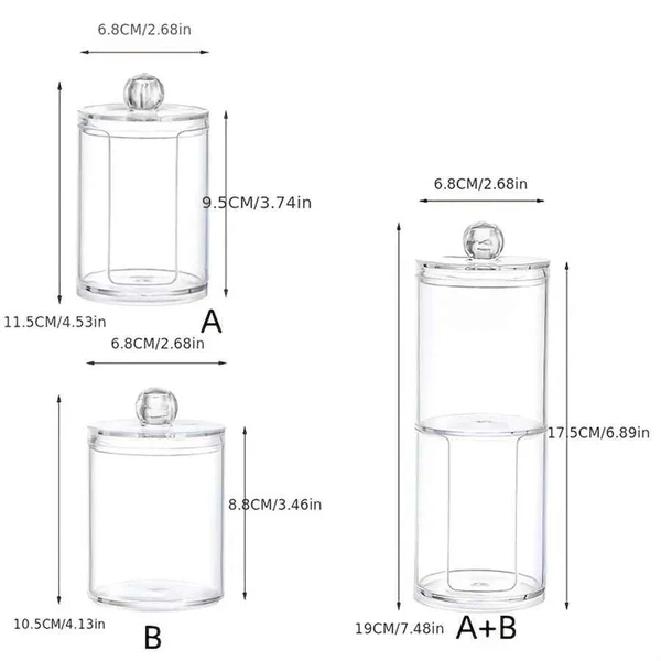 Transparent Stackable Acrylic Cotton Pad Holder, 2 In 1 Cotton Pad Storage, Upper and lower combined storage box